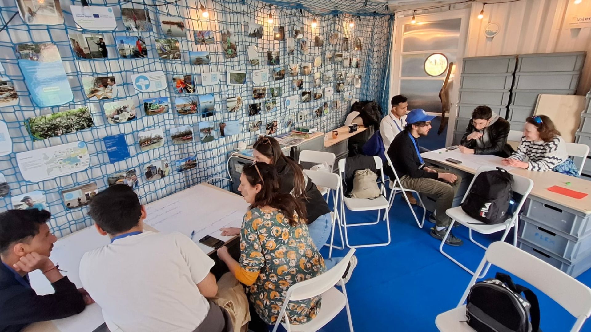 The practical elements of the workshop took place in the floating community space and exhibition space called FLEX-Sárazsadány, which was established on an upcycled ferry from River Bodrog and became a unique event site in the region. The participants took part in community river cleanup (CRC) by boat and canoes as field exercise, got acquainted with the professional river cleanup tools used by KÖTIVIZIG, and also learned the community waste collection and riverine waste sorting methodology developed by the Plastic Cup.